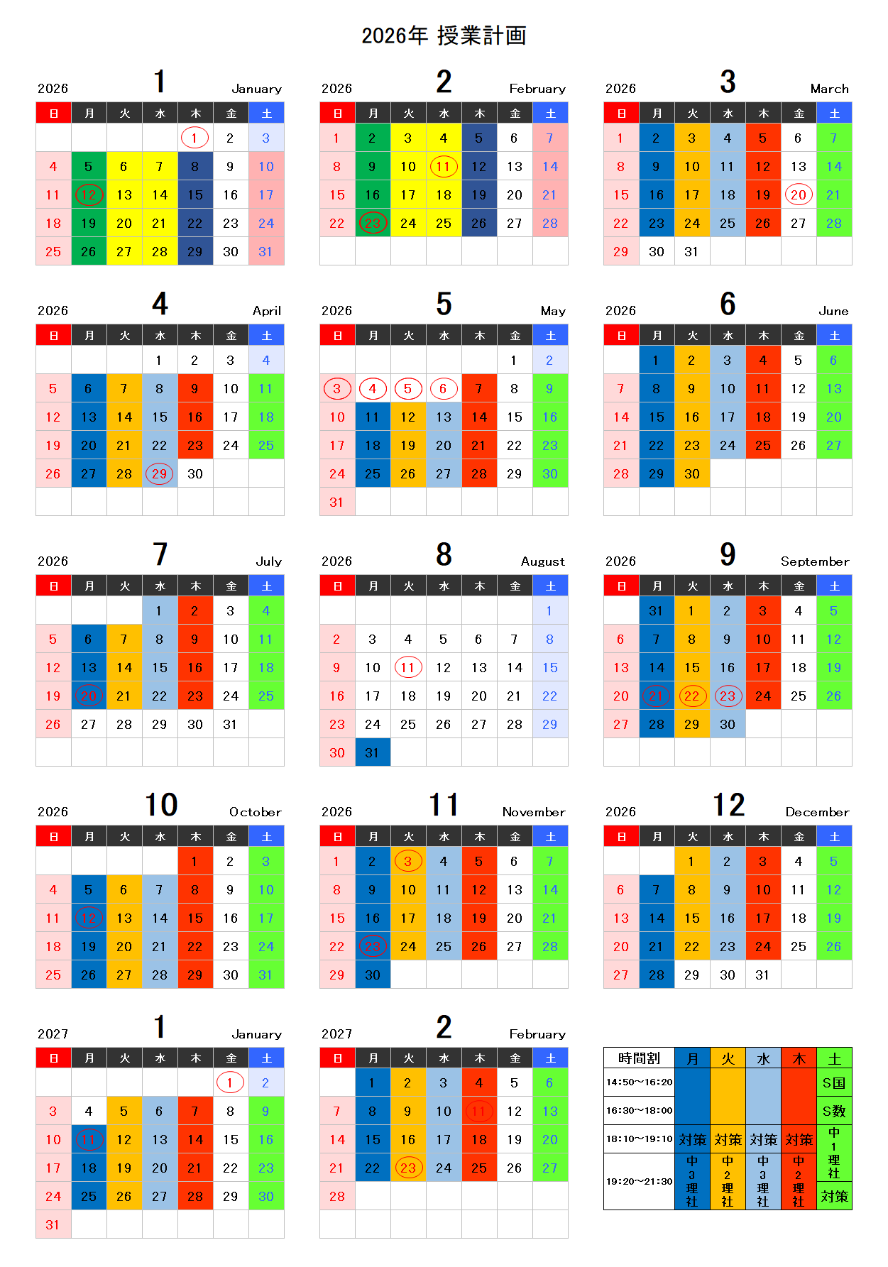 • 在籍生徒の事情により時間割、日程は変更する可能性があります。